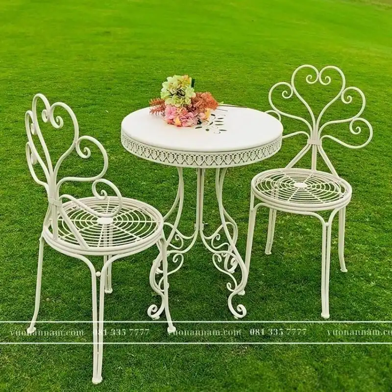 Một bộ bàn ghế sắt trong sân vườn sẽ đem lại sức sống cho không