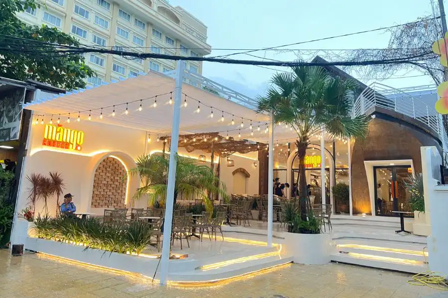 Mango Coffee tọa lạc tại trung tâm thành phố Nha Trang và có một diện tích rộng và vuông vắn. Tổng thể của quán được tạo nên từ những bức tường sơn trắng, mang đậm nét tinh tế, nhẹ nhàng của kiến trúc Địa Trung Hải. Quán cũng có những cửa sổ lớn, mở ra vườn cây, tạo sự kết nối giữa con người và thiên nhiên. Mọi đồ đạc bên trong quán đều được làm từ các vật liệu thân thiện với môi trường như mây, tre, nứa, theo thiết kế độc đáo và không giống với bất kỳ quán nào khác.