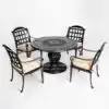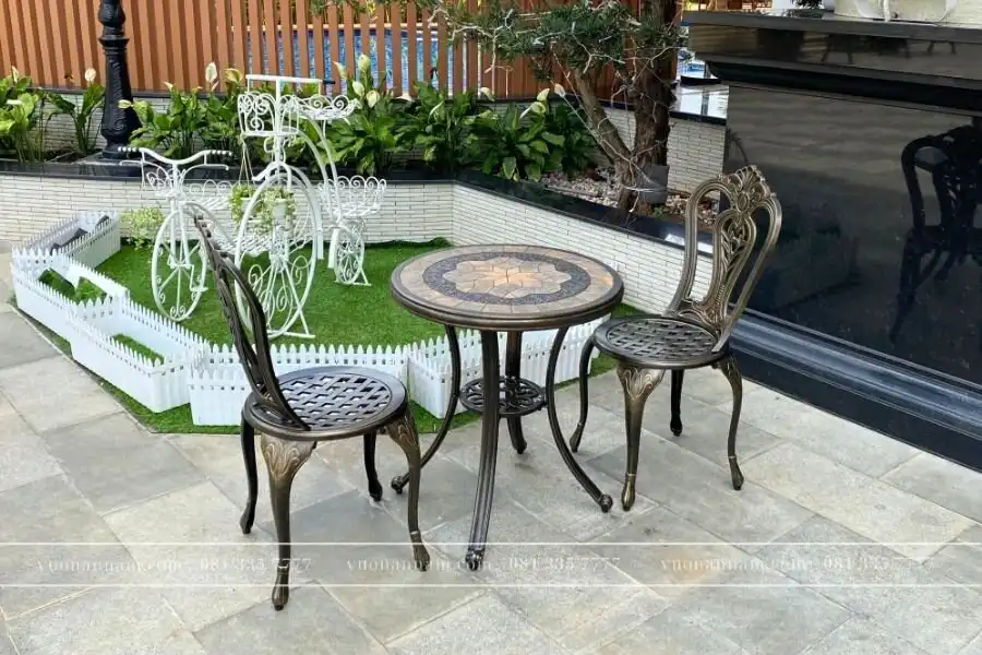 Bộ bàn ghế mang thiết kế sang trọng phù hợp với nhiều không gian sân vườn khác nhau. Đó có thể là không gian ban công mát mẻ, cũng có thể là không gian sân vườn thoáng đãng. Bộ bàn ghế sẽ là điểm nhấn hoàn hảo giúp không gian thêm nổi bật. Với kích thước không quá to, đây sẽ là dừng chân để thưởng trà, thư giãn hay đọc sách, nhâm nhi tách cafe vào buổi sáng.