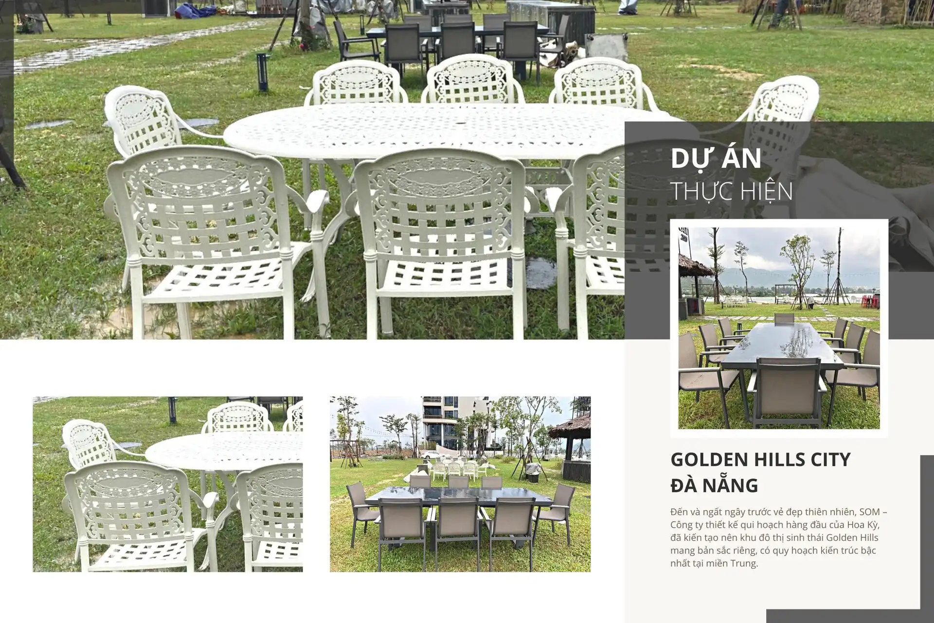 Là một trong những KĐT đắt đỏ tại Đà Nẵng, Golden Hills Đà Nẵng là một trong những nơi đắt đỏ. Tại đây, KĐT không chỉ nổi bật với diện tích rộng lớn mà còn có nhiều tiện ích như trường học, trung tâm y tế,… Giữa nhiều doanh nghiệp cung cấp bàn ghế nhưng KĐT Golden Hills đã lựa chọn Vườn An Nam trở thành nơi cung cấp bàn ghế ngoài trời cho không gian.