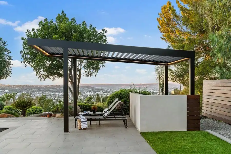 Trong thiết kế pergola hiện đại, đường nét thường được giữ đơn giản, với màu sắc tối giản và tập trung vào sự thoải mái và tính tiện nghi. Cấu trúc của nhà chòi mái nhôm này được xây dựng để tạo nên không gian mở, mang lại cảm giác nhẹ nhàng và thoải mái. Điều này giúp sản phẩm không chỉ là một điểm nhấn thu hút mà còn là một khu vực lý tưởng để thư giãn và tận hưởng không gian xung quanh trong kiến trúc hiện đại đầy phong cách và tính đương đại.