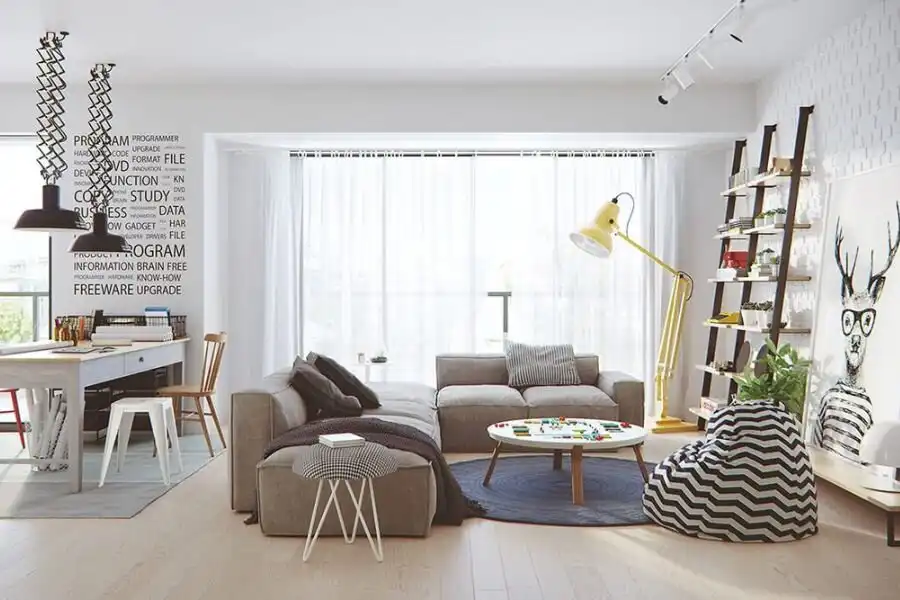 Phong cách này còn đặc trưng bởi việc tận dụng ánh sáng tự nhiên một cách tối ưu thông qua cửa sổ lớn, giúp không gian trở nên rộng rãi và thoáng đãng. Sự thoải mái và tính cá nhân được thể hiện qua việc sử dụng các phụ kiện trang trí nhỏ, nhưng vẫn giữ cho không gian mở và không quá nặng về trang trí.