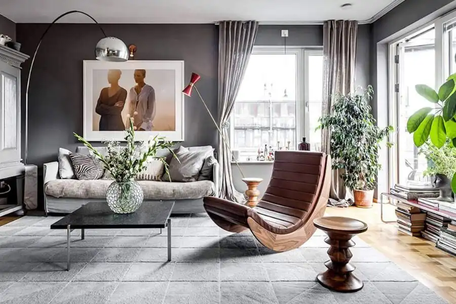 Ngược lại, Scandinavian Modern mang đến cảm giác hiện đại và tối giản. Chất liệu sử dụng chủ yếu là kim loại, thủy tinh và nhựa, với các đường cong và hình dạng đơn giản. Màu sắc trong phong cách này thường là sự kết hợp giữa trắng, đen, và xám, tạo nên một không gian trang nhã và tinh tế.