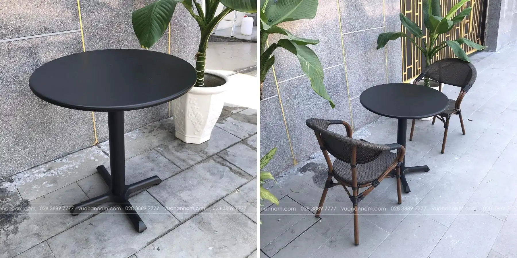 Đặc biệt, tông màu đen và thiết kế đơn giản giúp bàn phù hợp với nhiều mẫu ghế cafe khác nhau và nhiều phong cách thiết kế kiến trúc.