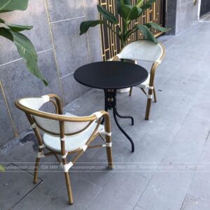 Bàn Cafe Tròn Ngoài Trời BC-TD4 là bàn tròn đen với những đường nét uốn cong mềm mại của Vườn An Nam.