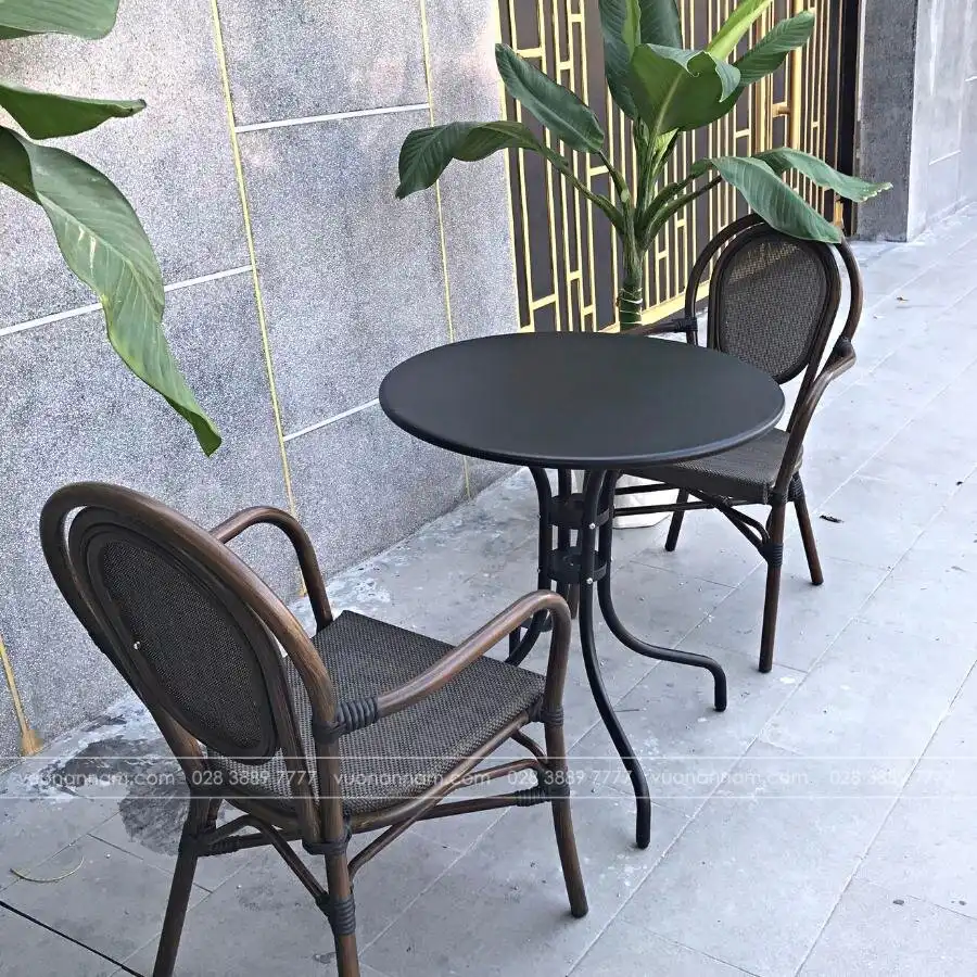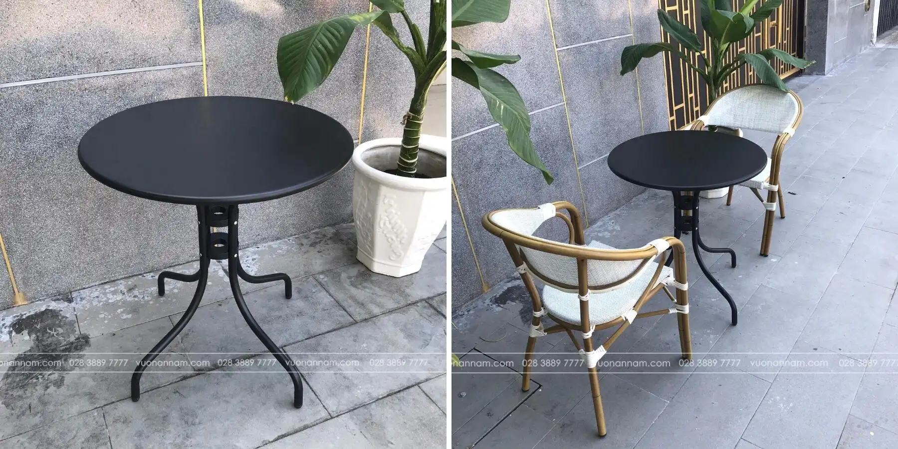 Bàn Cafe Tròn Ngoài Trời BC-TD4 là bàn tròn đen với những đường nét uốn cong mềm mại của Vườn An Nam.