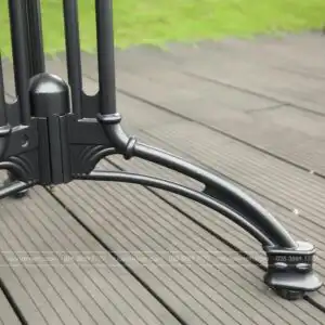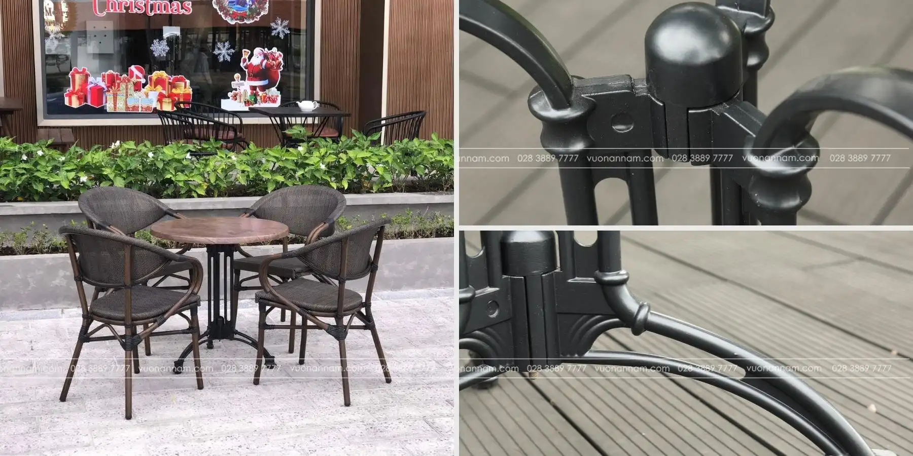 Chân bàn được làm từ nhôm đúc sơn tĩnh điện, một chất liệu rất bền bỉ với khả năng chịu lực, chịu nhiệt hoàn hảo. Lớp sơn tĩnh điện bảo vệ không lo bị hoen gỉ, bay màu, giúp sản phẩm luôn bền, đẹp với thời gian.