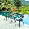 Bộ Bàn Ghế Cafe Ngoài Trời BC-09T sẽ xóa tan lo ngại vết bẩn và nhanh phai đối với bàn ghế màu trắng.