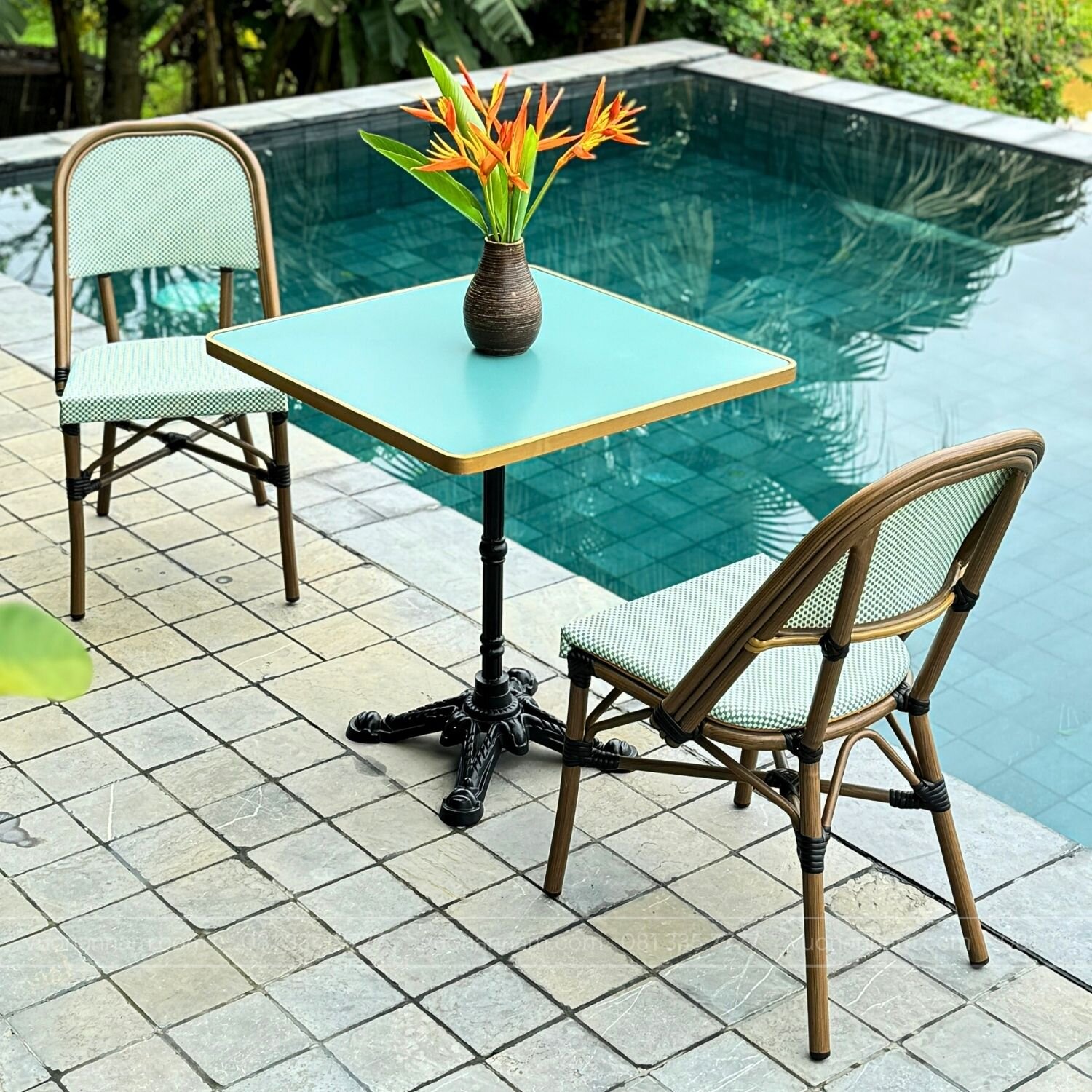 Bộ bàn ghế ngoài trời nhôm đúc BG-02M màu nâu bàn mặt đá D60cm