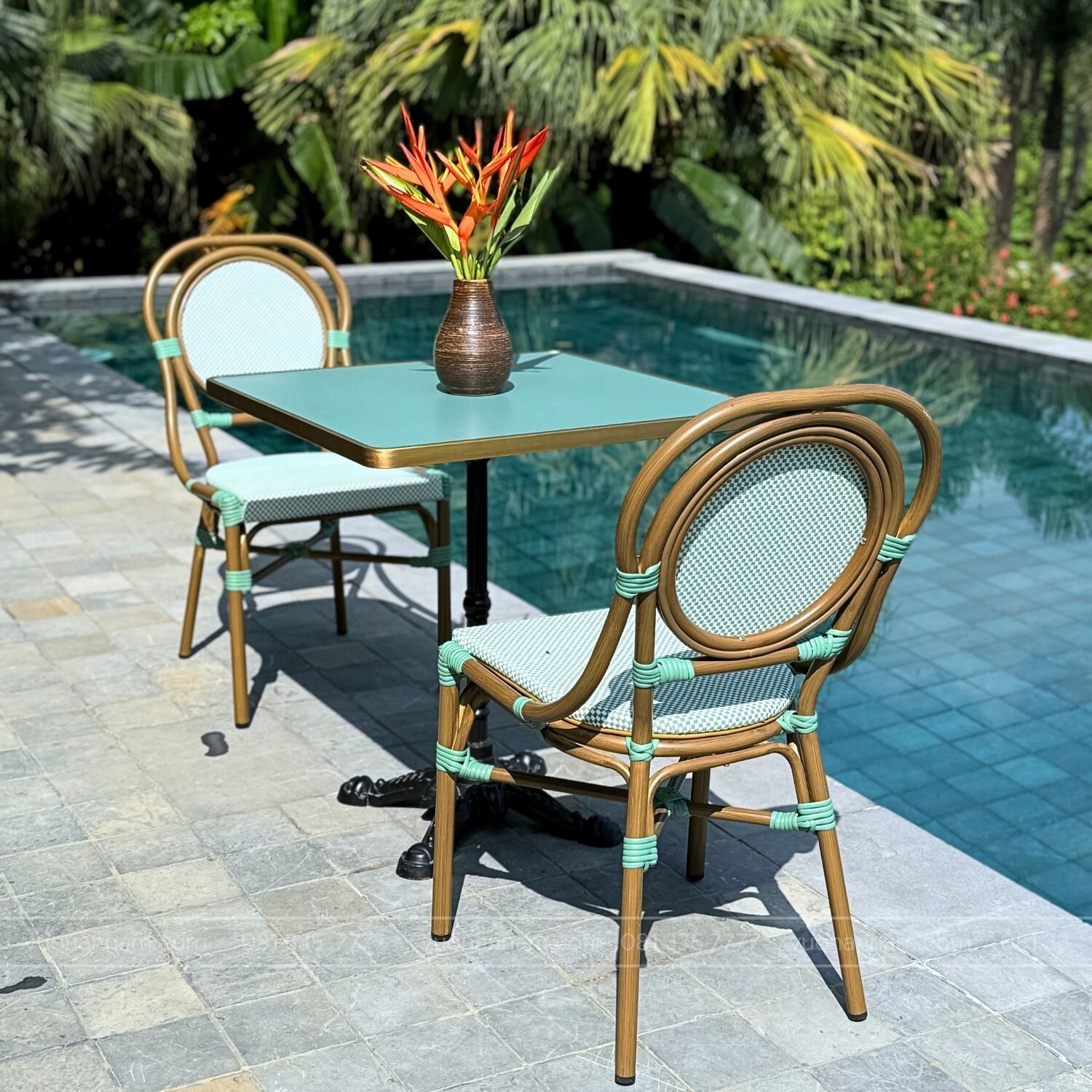 Bộ bàn ghế sân vườn nhôm đúc BG-27N màu nâu bàn D60cm