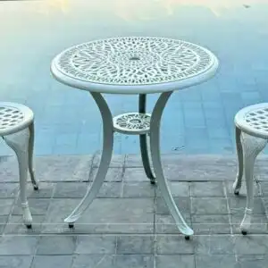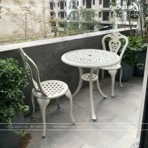 Bộ bàn ghế được làm từ chất liệu nhôm đúc cao cấp, không chỉ đảm bảo độ bền vững mà còn mang lại sự an tâm cho người sử dụng.