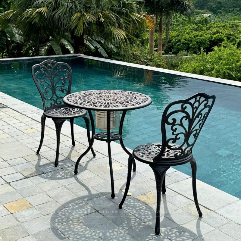 Bộ bàn ghế này còn được phủ một lớp sơn tĩnh điện chống xước cao cấp, giúp tăng thêm vẻ đẹp cho sản phẩm và đảm bảo bề mặt luôn sáng bóng như mới. Đặc biệt, chất liệu nhôm nhẹ nhưng cực kỳ chắc chắn giúp sản phẩm dễ dàng di chuyển nhưng vẫn đảm bảo độ bền vững khi sử dụng.