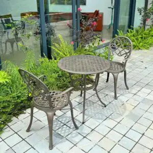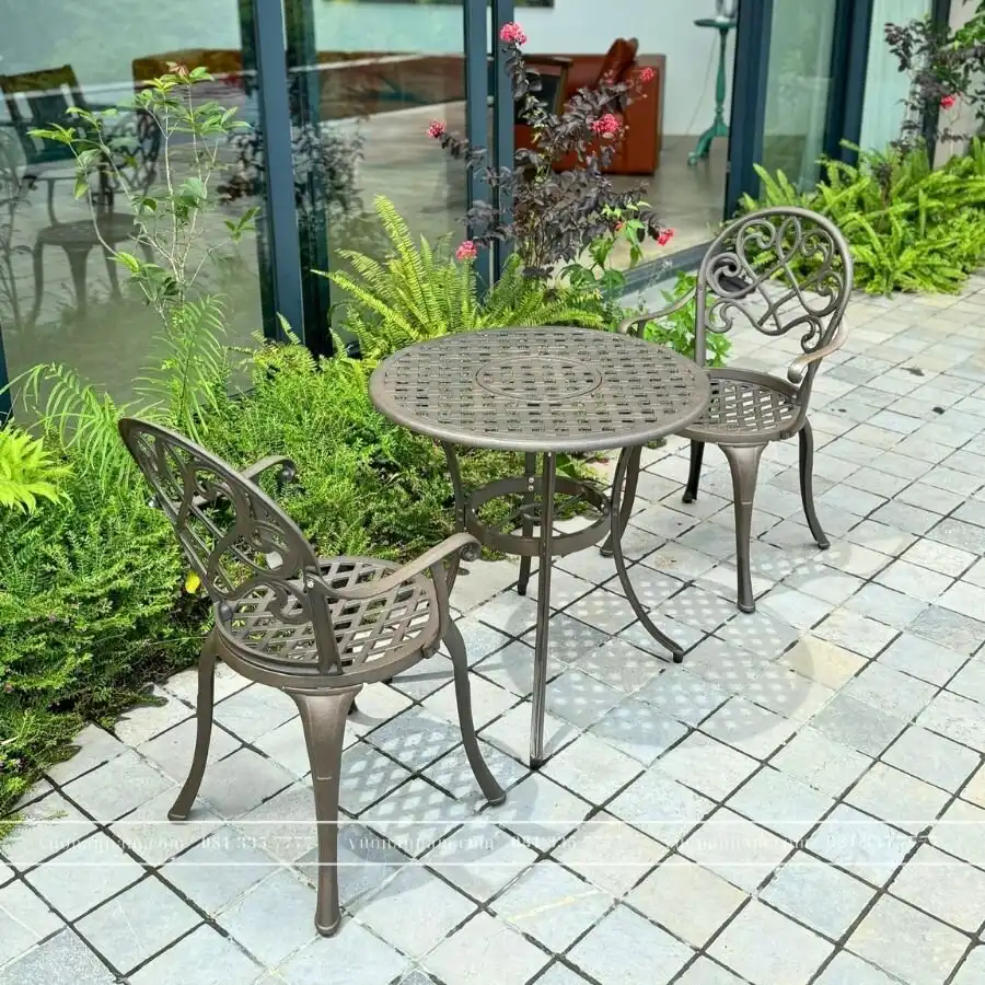 Với thiết kế đơn giản và sang trọng, bộ bàn ghế nhôm đúc này sẽ là một điểm nhấn đẳng cấp cho không gian ngoài trời của bạn.