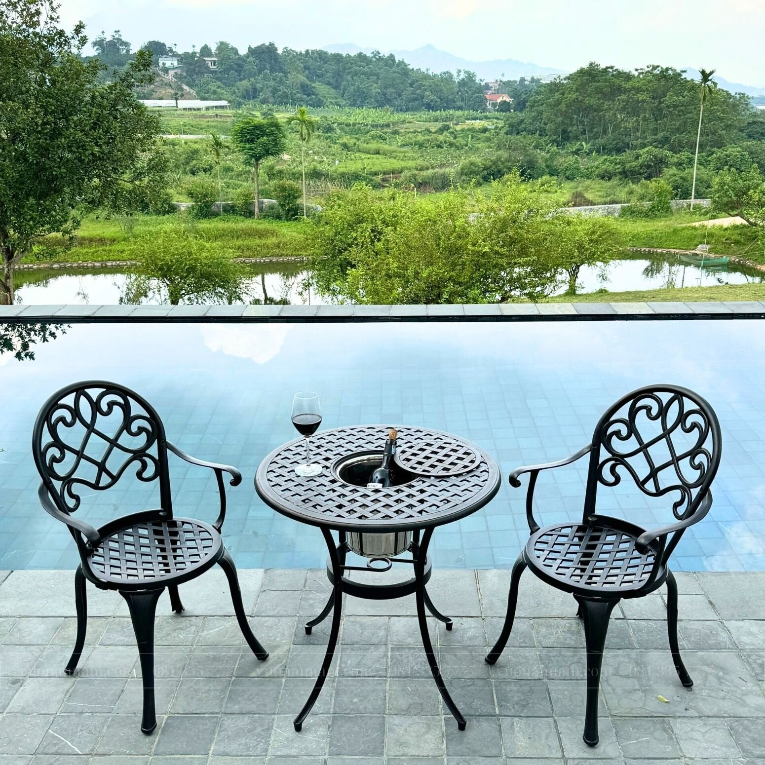 Dù là trong sân vườn cổ điển với cây cỏ xanh mát hay ban công hiện đại với tông màu tối giản. Bộ bàn ghế vẫn nổi bật mà không làm mất đi sự hài hòa chung.