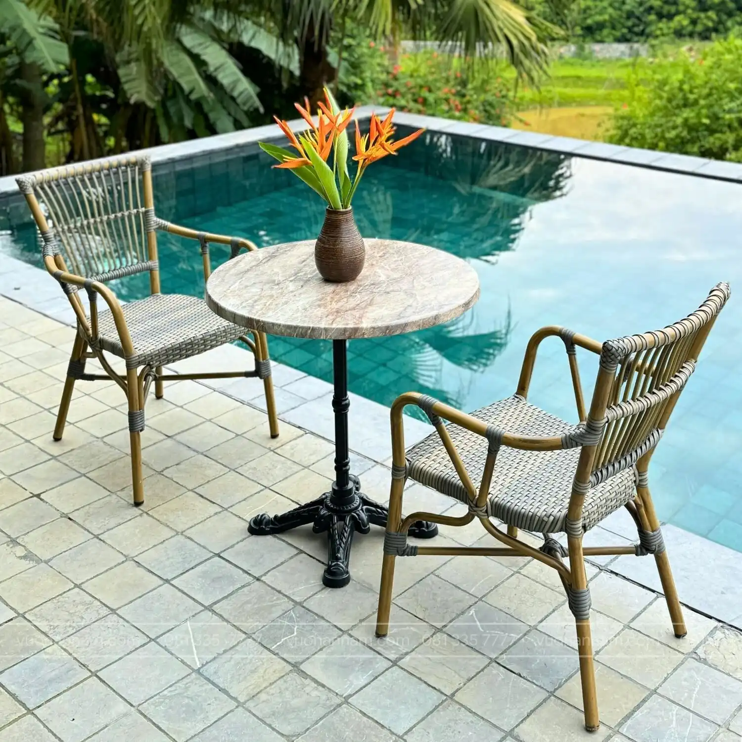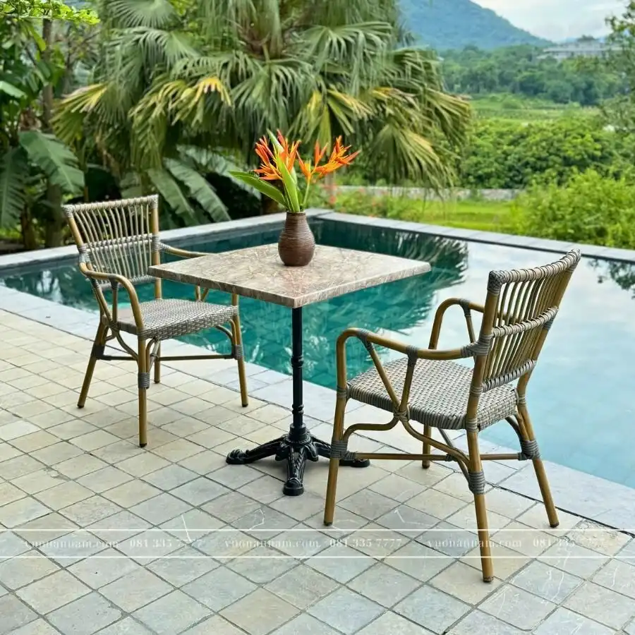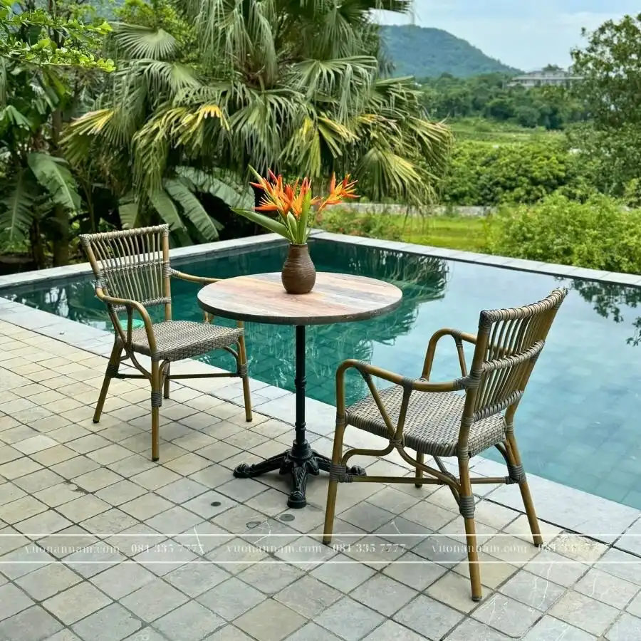 Bạn đang cần tìm những bộ bàn ghế đẹp, có thể trưng bày ở những không gian ngoài trời như sân thượng, ban công,… mà không ngại hư hỏng? Hay bạn cần những mẫu bàn ghế theo phong cách mộc mạc, giản dị để làm đẹp cho khu vực sân vườn nhà mình? Hãy thử tham khảo mẫu sản phẩm giả mây BC-07 của Vườn An Nam.