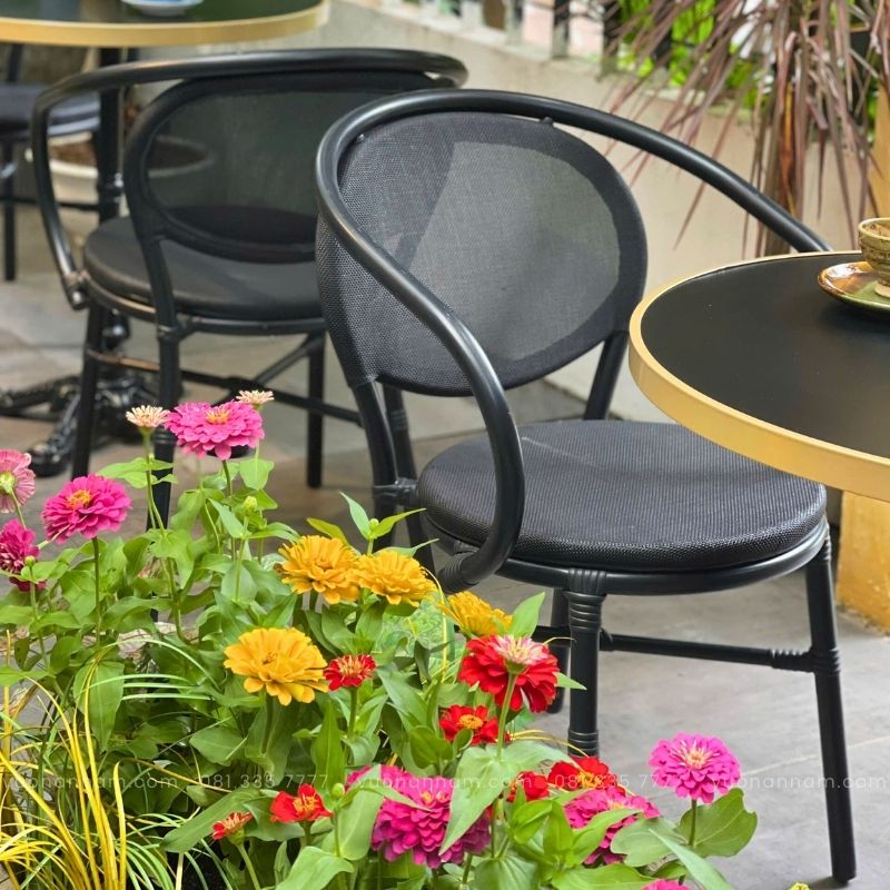 • Chất liệu ghế: Khung nhôm sơn tĩnh điện, mặt ngồi và lưng tựa lưới Textilene kháng nước.