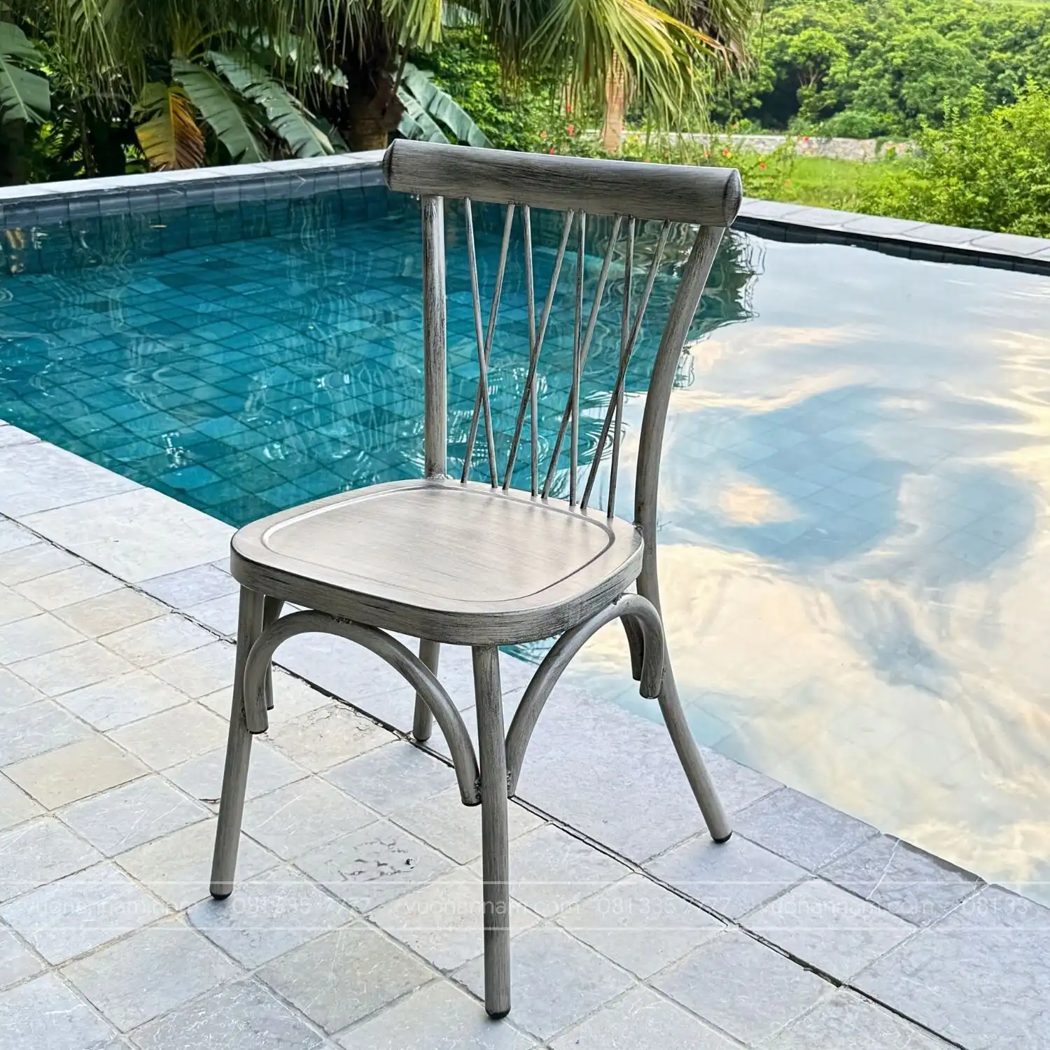 Mẫu ghế được làm bằng chất liệu nhôm phủ lớp sơn tĩnh điện cao cấp cho không gian ngoài trời. Nhôm được xem là chất liệu bền bỉ được nhiều người lựa chọn. Đây được xem là chất liệu cao cấp của ngành ngoại thất được nhiều người đánh giá cao.