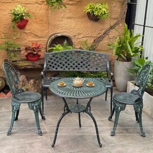 Mỗi tác phẩm trong bộ sản phẩm này phản ánh sự khéo léo và sự chú ý đến từng chi tiết trong quá trình tạo ra nó. Các thiết kế nhôm đúc phức tạp trên bàn và ghế thể hiện tính thẩm mỹ cổ điển không bao giờ lỗi thời. Với các chi tiết trang trí công phu, bộ sản phẩm này gợi lên nét quyến rũ của một công viên Châu Âu, cho phép bạn mang bầu không khí mê hoặc đó vào sân vườn của chính mình.