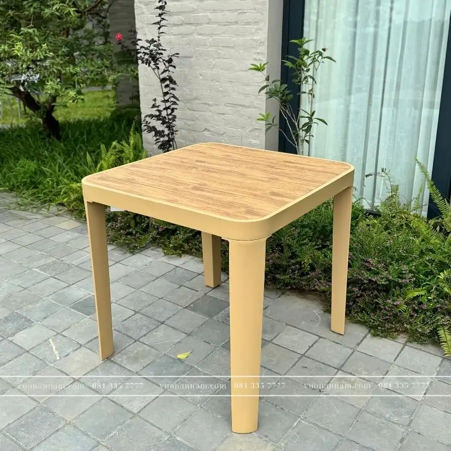 Bộ bàn ghế mang thiết kế từ những đường nét dứt khoát, kiểu dáng tối giản đến từng chi tiết. Đó là sự kết hợp hài hòa giữa tone màu Beige nhẹ nhàng cùng tone màu gỗ nổi bật không gian sân vườn. Dù mang thiết kế tối giản nhưng bộ bàn ghế vẫn nổi bật khi đặt tại mọi không gian.