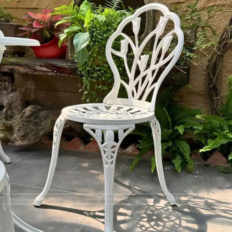 Bộ bàn ghế sân vườn tulip BG-012T được làm từ chất liệu nhôm đúc toàn bộ sơn tĩnh điện cao cấp. Chất liệu nhôm đúc được xem là chất liệu cao cấp nhất của ngành ngoại thất, nhẹ nhàng, bền bỉ có thể đặt ở mọi không gian khác nhau.
