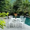 Bộ bàn ghế nhôm đúc BG-028X được chế tác hoàn toàn từ nhôm đúc nguyên khối phủ sơn tĩnh điện, nổi bật với khả năng chống ăn mòn, không gỉ sét, chịu được nắng mưa và không biến dạng theo thời gian. Đây là chất liệu lý tưởng cho nội thất ngoài trời, vừa đảm bảo độ bền cao, vừa dễ bảo quản, lau chùi và duy trì vẻ đẹp như mới sau nhiều năm sử dụng.