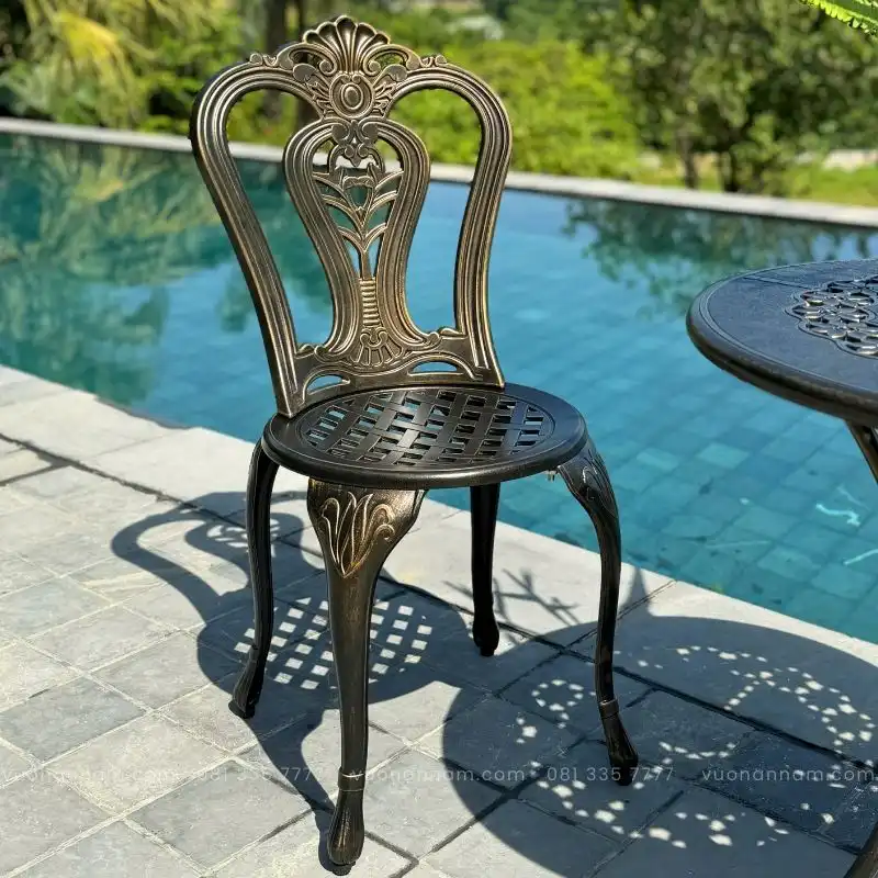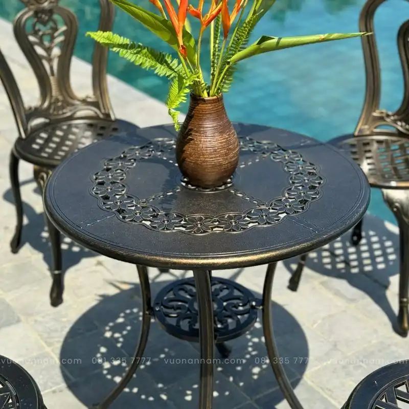 Bộ bàn ghế nhôm đúc BG-D65N màu nâu bàn D65cm