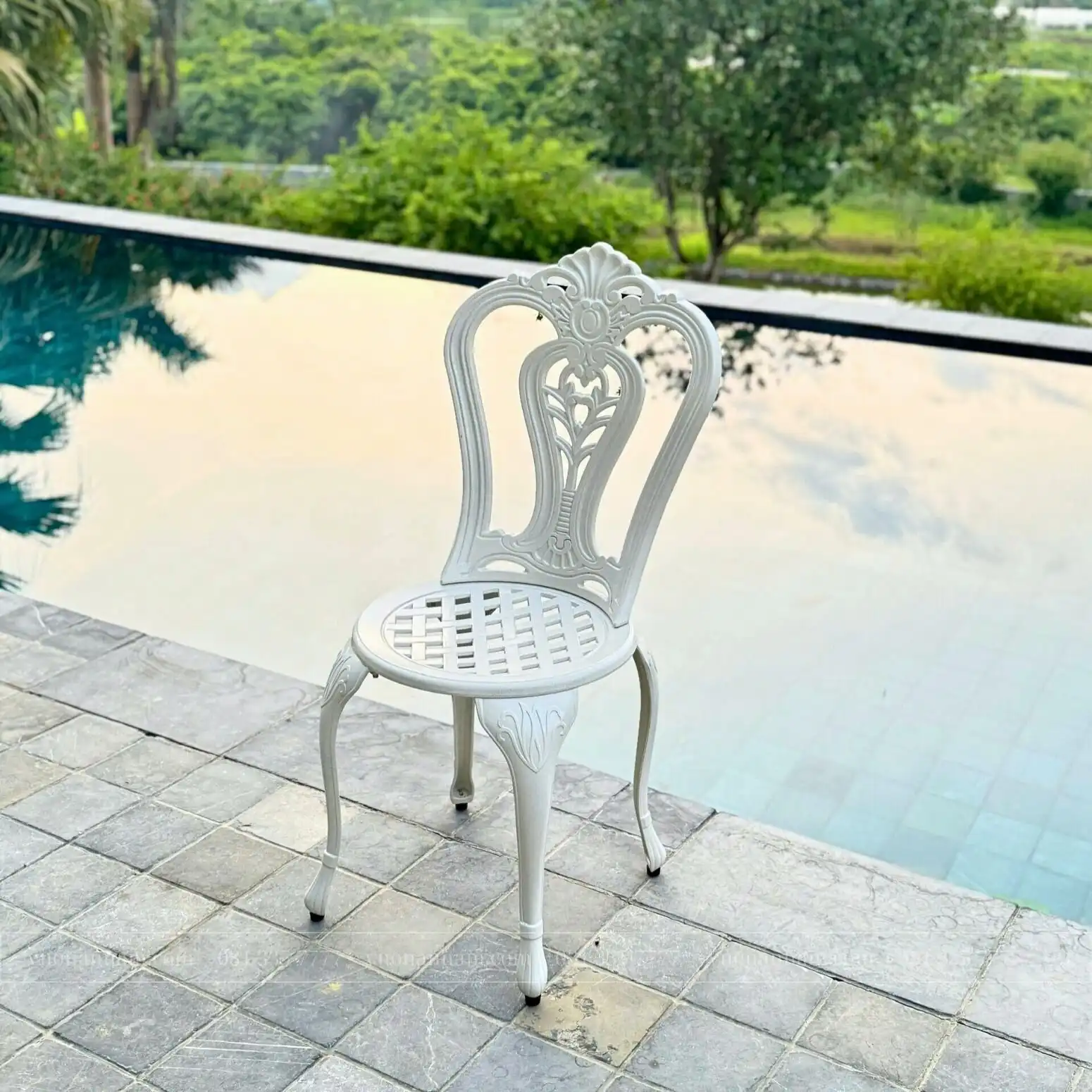 Bộ bàn ghế nhôm đúc BG-D65T màu trắng bàn D65cm