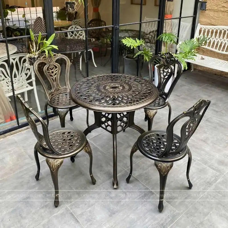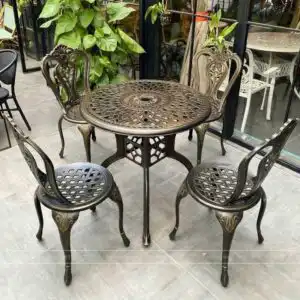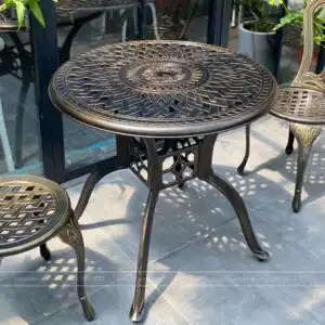 Bộ bàn ghế sân vườn BG02-D80N được cấu thành từ chất liệu nhôm đúc sơn tĩnh điện cao cấp. Đây là chất liệu được ưa chuộng cho không gian ngoại thất. Nhôm đúc có đặc tính nổi bật là nhẹ mà bền, giúp người sử dụng dễ dàng di chuyển, đặt tại bất kỳ đâu. Ngoài ra, bộ bàn ghế có thể chịu được tác động của mọi điều kiện thời tiết khắc nghiệt.