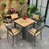 Bộ bàn ghế ngoài trời này được tạo nên từ khung nhôm đúc nguyên khối, phủ sơn tĩnh điện cao cấp, mang đến độ bền vượt trội trong điều kiện thời tiết khắc nghiệt. Khung nhôm không chỉ giúp tổng thể sản phẩm trở nên chắc chắn mà còn chống ăn mòn, không han gỉ, không cong vênh dưới nắng nóng hay mưa ẩm – lý tưởng cho những không gian ngoài trời như sân vườn, ban công, hiên nhà hay sân thượng.