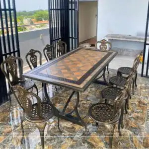 Trong nhịp sống hướng về thiên nhiên, những khoảng sân vườn, hiên nhà hay sân thượng trở thành không gian lý tưởng để thư giãn. Bộ bàn ghế sân vườn BG-02CNM màu nâu 10 ghế với khung nhôm bền bỉ và mặt bàn đá gốm thủ công mang đến vẻ đẹp mộc mạc mà tinh tế, vừa trang nhã vừa phù hợp với nhiều phong cách thiết kế hiện đại, từ quán café đến resort nghỉ dưỡng – tạo điểm nhấn đẳng cấp cho mọi không gian sân vườn, hồ cá hay sân thượng.