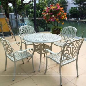 Được làm hoàn toàn từ hợp kim nhôm đúc, sản phẩm là lựa chọn hoàn hảo cho không gian ngoài trời. Nhôm đúc có độ bền vượt trội khác hẳn với gang, sắt, đồng,… Những bộ bàn ghế từ nhôm đúc thường có thời gian sử dụng lâu và giữ được vẻ đẹp lâu hơn những chất liệu khác.