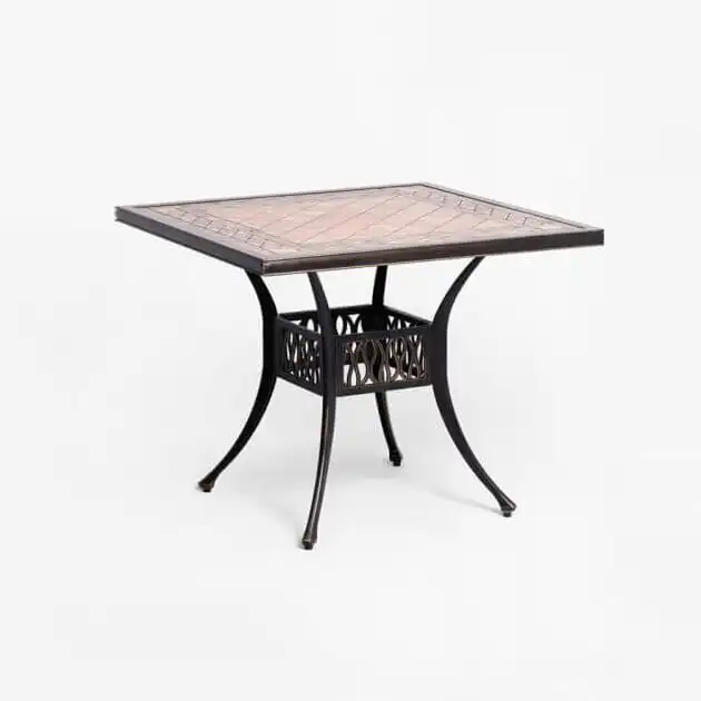 • Chất liệu bàn: Khung nhôm đúc sơn tĩnh điện, bàn mặt đá gốm