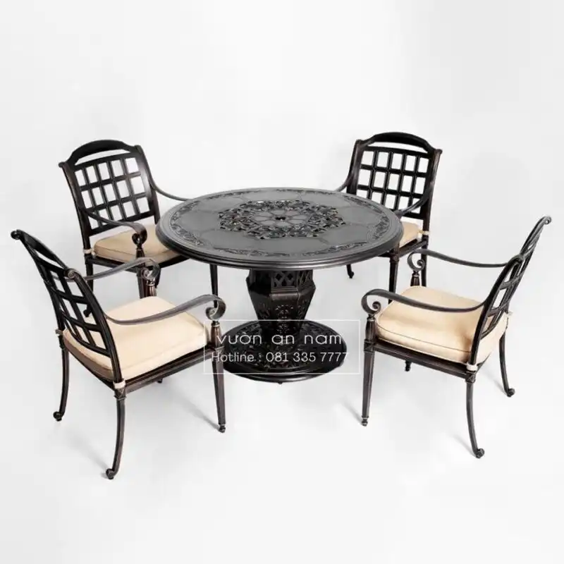 Bàn ghế sân vườn BG-08N thuộc loại sản phẩm ngoài trời cao cấp. Kiểu dáng sang trọng, cổ điển kết hợp hài hòa chất liệu nhôm đúc chuyên dụng ngoài trời. Sản phẩm dễ dàng phối cùng những kiểu bàn ăn khác nhau, tô thêm điểm nhấn sang trọng cho ngôi nhà.