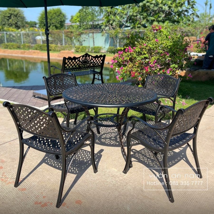 Ngoài ra, bộ bàn ghế chuyên sử dụng cho không gian ngoài trời như sân vườn, sân thượng, resort,… Với đặc tính không hao mòn, gỉ sét, chịu được thời tiết nắng mưa khắc nghiệt.
