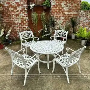 BG-23 được hoàn thiện từ chất liệu nhôm đúc cao cấp. Chất liệu này nổi bật bởi đặc tính “nhẹ mà bền”, lựa chọn hoàn hảo cho sân vườn. Tuy mang trọng lượng không nặng như gang và sắt nhưng bộ bàn ghế chịu được tải trọng lên đến 250kg.
