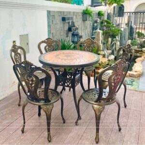 Tóm lại, bộ bàn ghế nhôm đúc BG-02-D80M là sự kết hợp hoàn hảo giữa vẻ đẹp, tính năng và độ bền, giúp tạo điểm nhấn đặc biệt cho không gian ngoài trời của bạn.