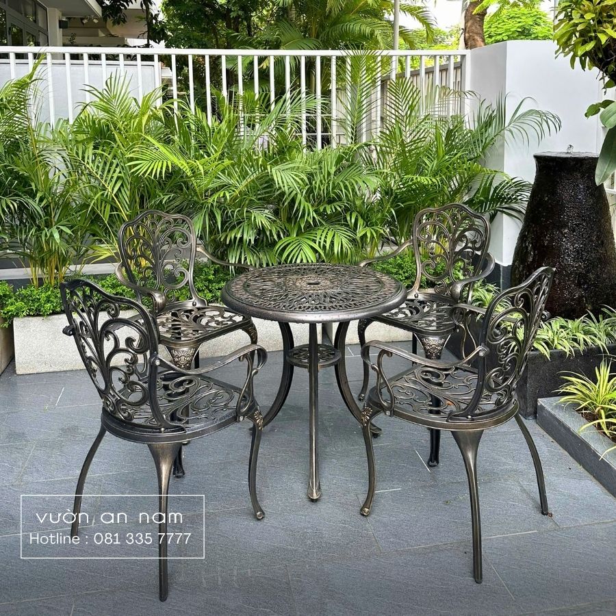 Bộ bàn ghế sân vườn BG-011 là một trong những sản phẩm được nhiều khách hàng của Vườn An Nam ưa chuộng. Nếu bạn đang tìm cho không gian bộ bàn ghế đảm bảo tính thẩm mỹ, còn là điểm tựa cho gia đình thì BG-011 sẽ là lựa chọn hoàn hảo dành cho bạn.