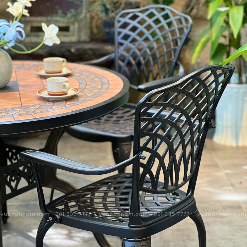 Sự kết hợp giữa chất liệu nhôm đúc và mặt bàn đá gốm mang đến một thiết kế độc đáo, vừa chắc chắn, vừa đầy tính thẩm mỹ. Bộ bàn ghế sân vườn BG15-D100M không chỉ là điểm nhấn cho khu vườn hay ban công mà còn là nơi khơi gợi những khoảnh khắc thư giãn nhẹ nhàng giữa thiên nhiên.
