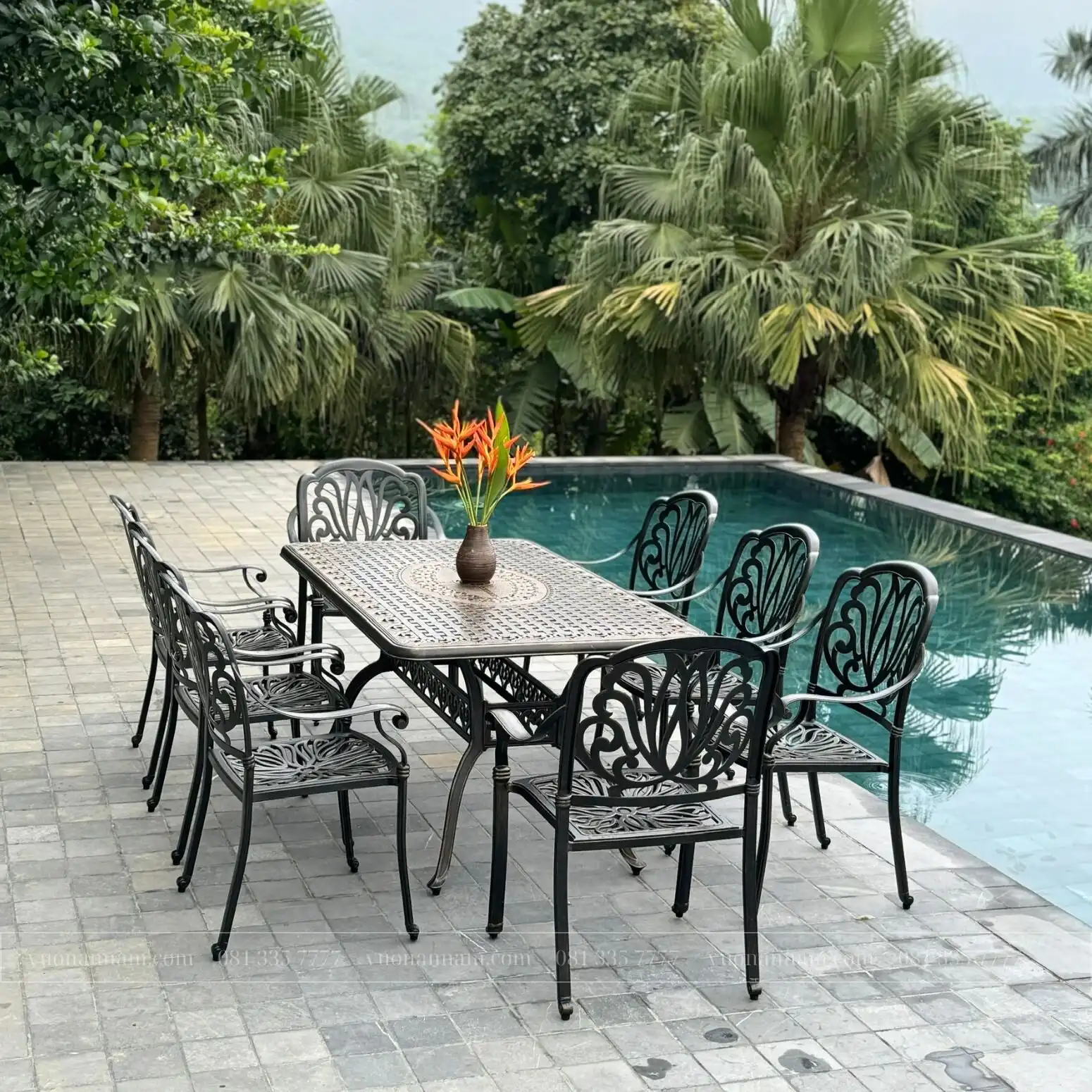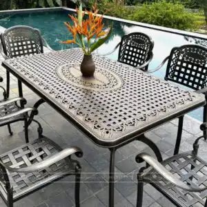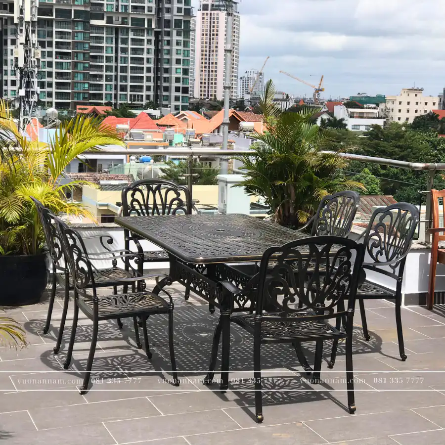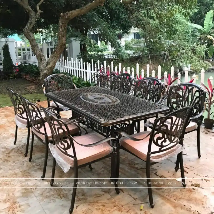 Sở hữu kích thước mặt bàn chữ nhật rộng rãi lên đến 1m8, phù hợp cho tiệc ngoài trời. Bộ bàn ghế là lựa chọn cho những không gian sân vườn, sân thượng, đó là điểm nhấn hoàn hảo cho không gian.