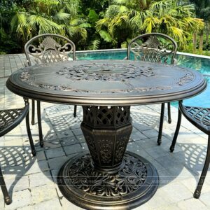 Không chỉ có tính thẩm mỹ cao, nhôm đúc còn đảm bảo kết cấu cứng cáp, không bị biến dạng và chắc chắn khi sử dụng. Dù có trọng lượng nhẹ hơn sắt hay gang, nhưng nhôm đúc đặc nguyên khối vẫn mang lại cảm giác ổn định, không bị lỏng lẻo. Bề mặt sơn tĩnh điện vừa tạo nên lớp bảo vệ vững chắc vừa mang đến độ bóng mờ sang trọng, giữ sản phẩm luôn sạch đẹp theo thời gian.