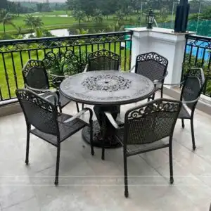 Khi thẩm mỹ hiện đại hòa quyện cùng nét đẹp truyền thống, một không gian sống mới mẻ, tinh tế và đầy chiều sâu sẽ được hình thành. Bộ bàn ghế sân vườn màu nâu 6 ghế BG-05TN với bàn tròn mang họa tiết lấy cảm hứng từ trống đồng, kết hợp cùng chất liệu bền bỉ và kiểu dáng sang trọng, là lựa chọn hoàn hảo cho ban công biệt thự, sân vườn hoặc khu nghỉ dưỡng cao cấp.