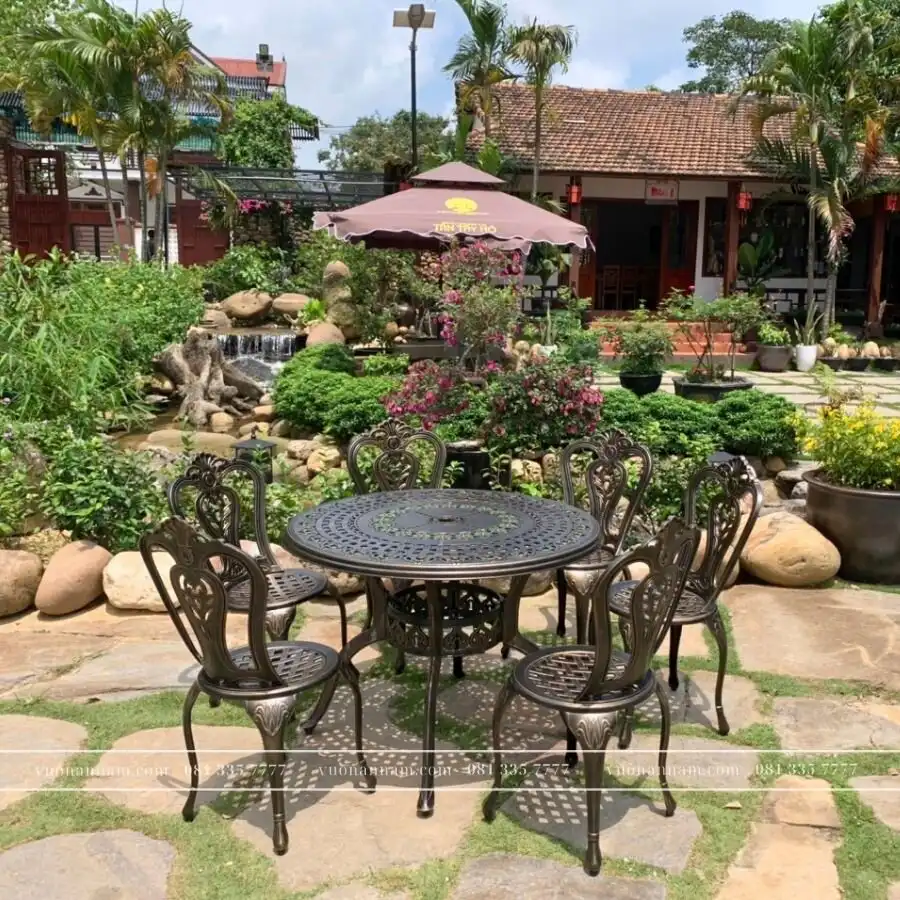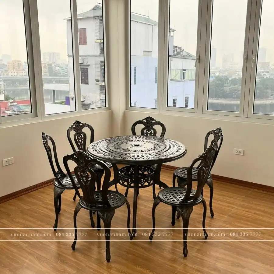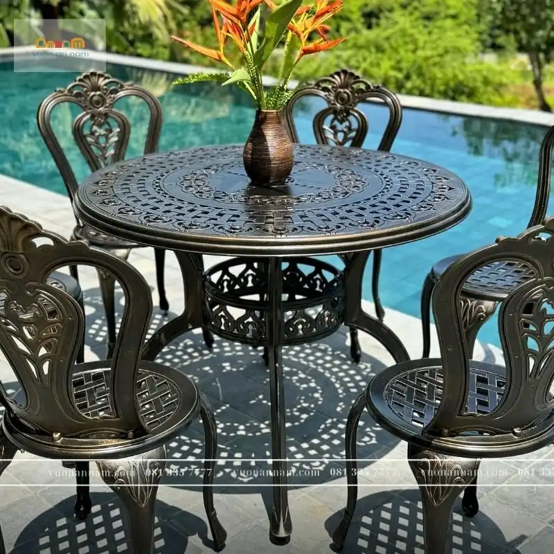 Bộ bàn ghế ngoài trời BG-D100N sở hữu thiết kế phù hợp với mọi không gian khác nhau, từ sân vườn đến không gian sân thượng thoáng mát. Các họa tiết được khắc họa tỉ mỉ mang lại vẻ đẹp độc đáo.
