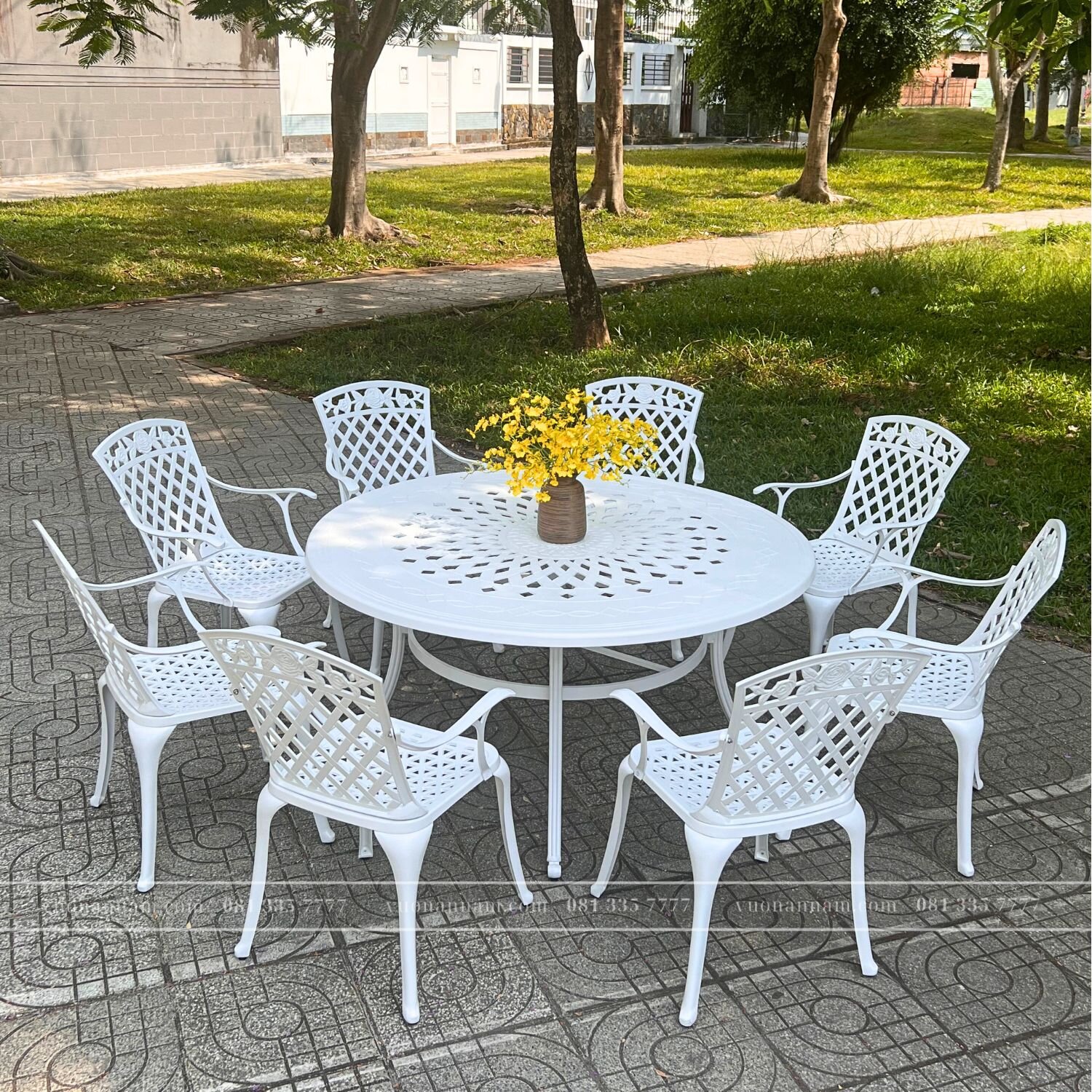 Bộ bàn ghế sân vườn màu trắng 8 ghế BG21-D150T