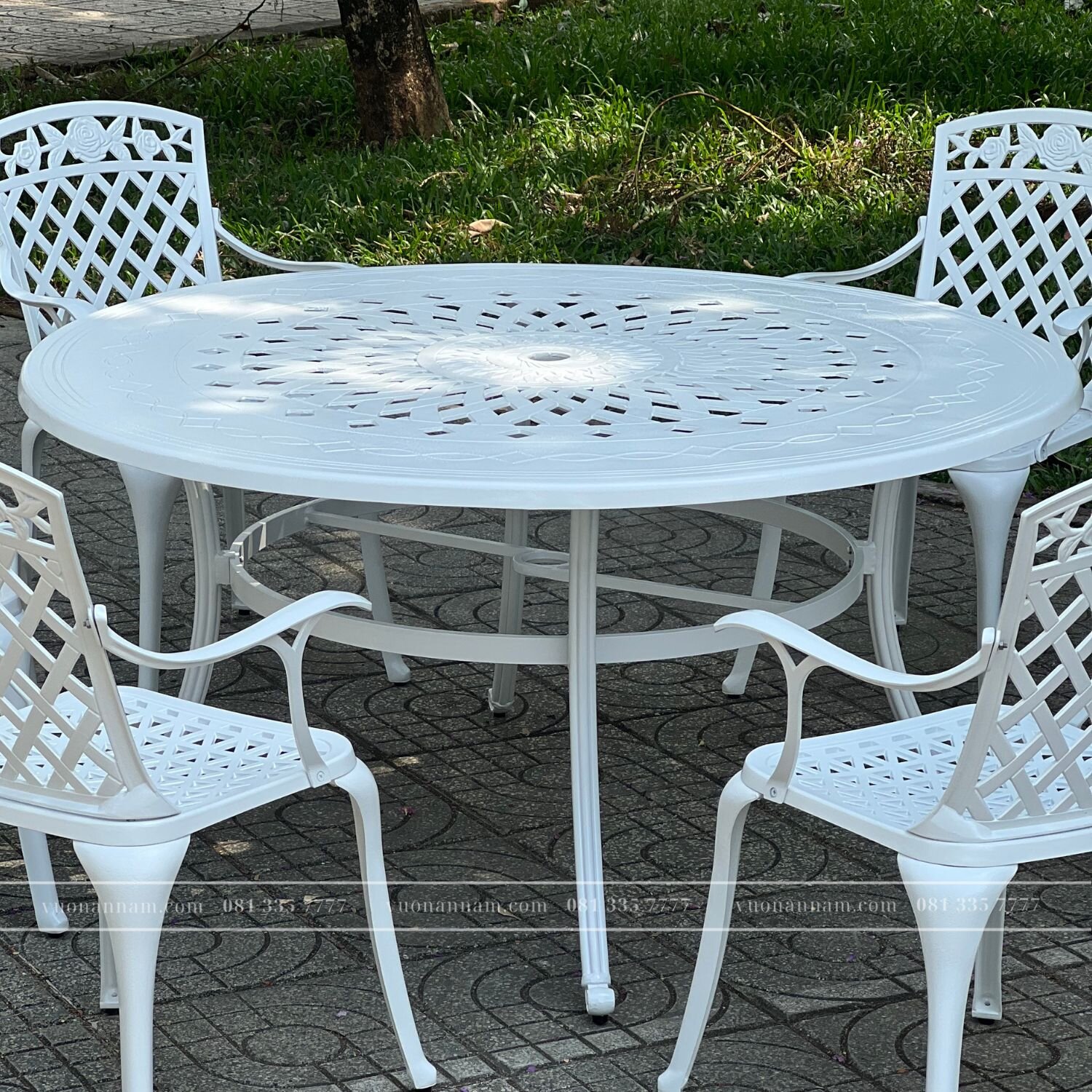 Lớp sơn tĩnh điện không chỉ là lớp áo khoác thẩm mỹ, mà còn giúp tăng độ bền vượt trội, chống bong tróc, nứt nẻ và không lo ố màu theo thời gian. Nhôm đúc vốn nổi tiếng với đặc tính nhẹ nhưng vô cùng chắc, không bị gỉ sét như sắt, không quá nặng nề như gang, nhưng lại có khả năng chịu lực rất tốt. Dù sử dụng lâu dài ngoài trời, bộ bàn ghế vẫn luôn giữ được sự vững chãi, không cong vênh, không phát ra tiếng động khó chịu, đảm bảo trải nghiệm thoải mái và yên tâm trong từng khoảnh khắc thư giãn.