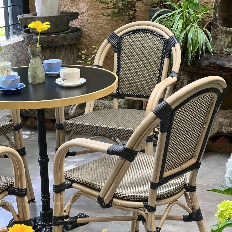 - Chất liệu ghế: Khung nhôm sơn tĩnh điện, mặt ngồi và lưng tựa lưới Textilene kháng nước.