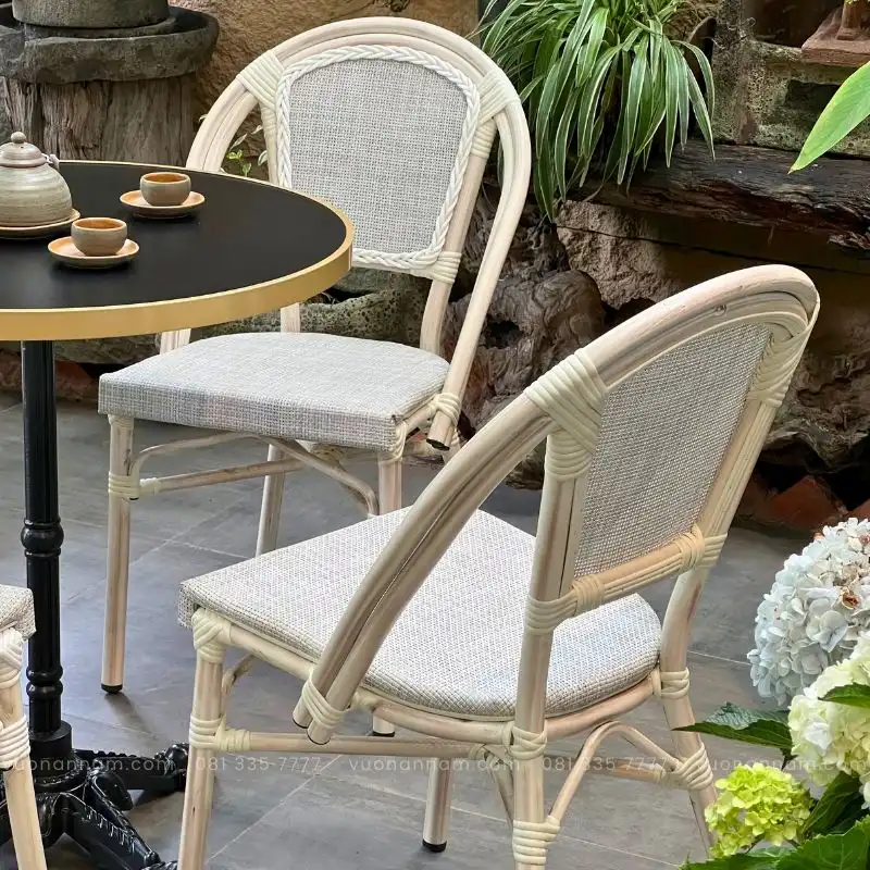 • Chất liệu ghế: Khung nhôm sơn tĩnh điện, mặt ngồi và lưng tựa lưới Textilene kháng nước.
