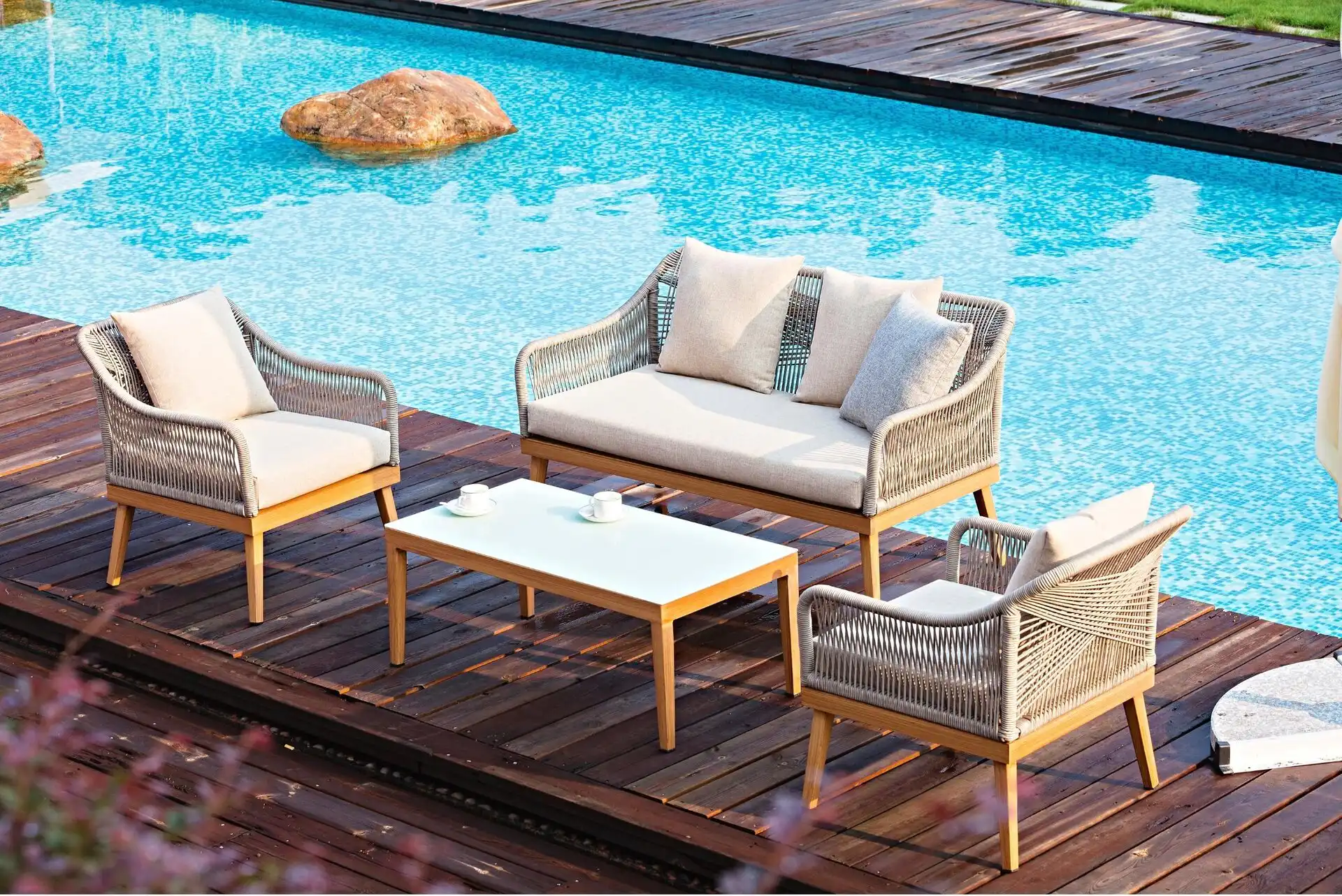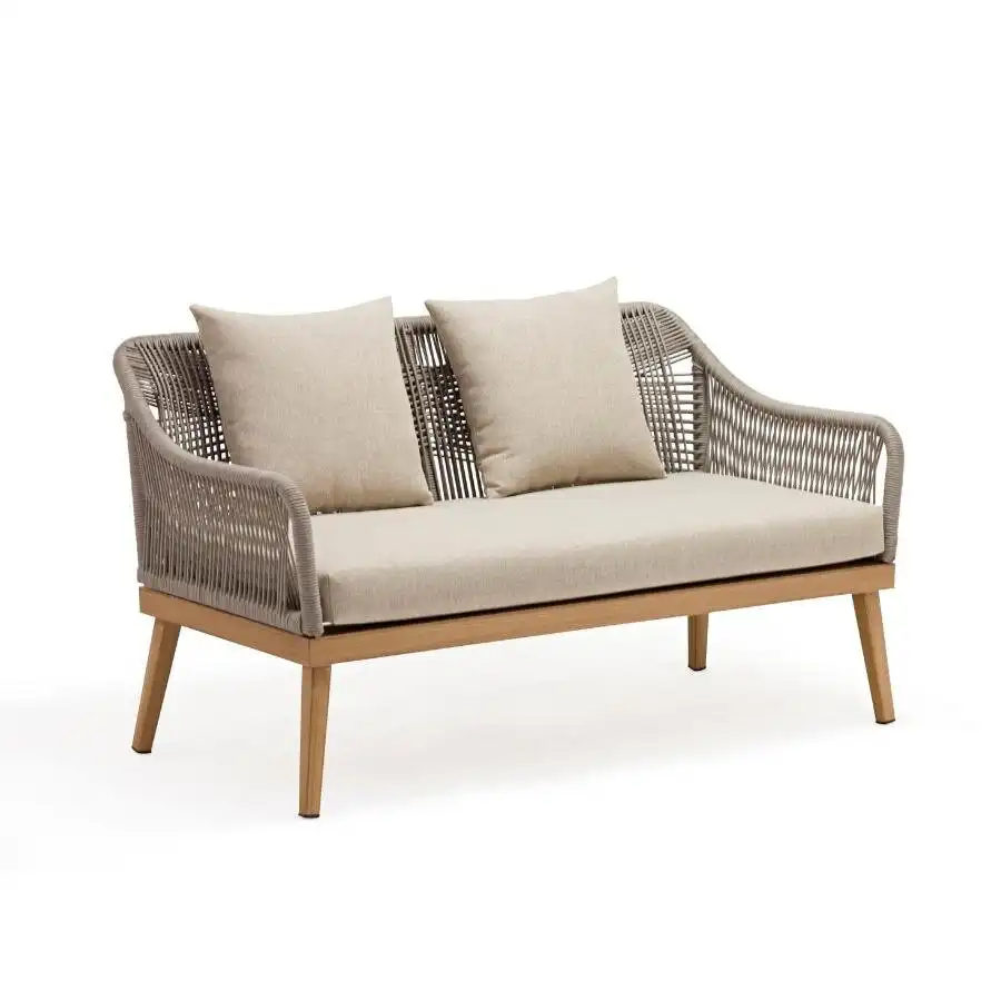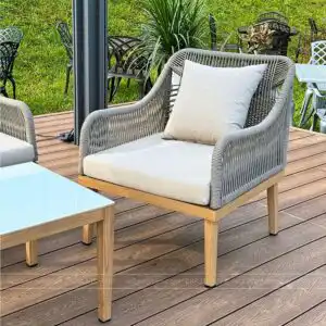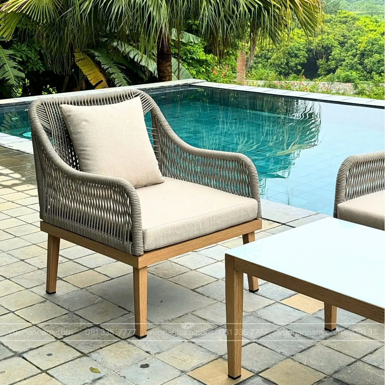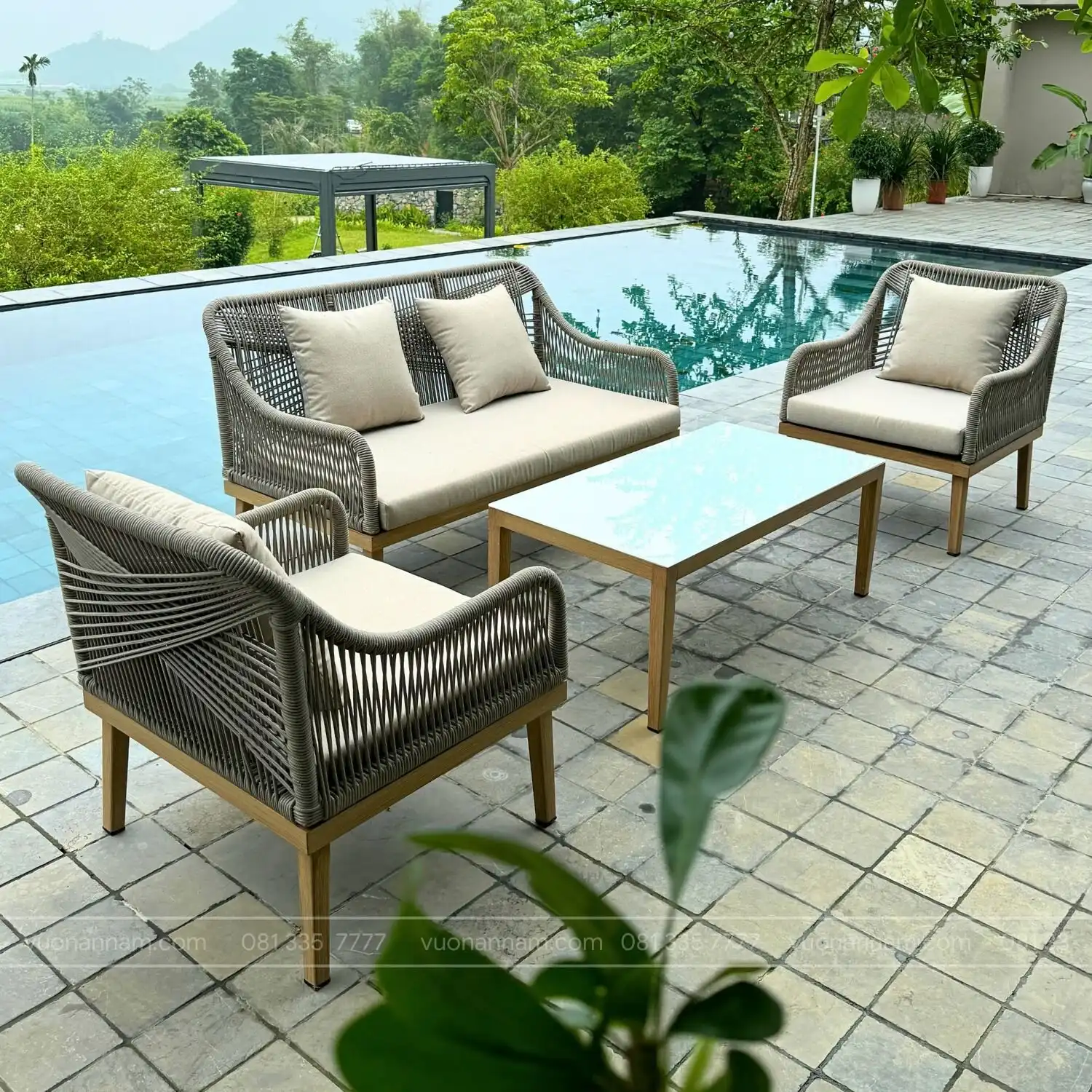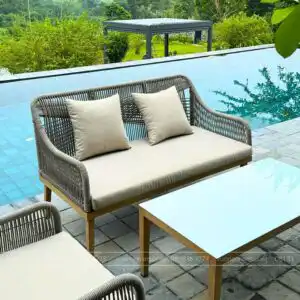 Đi kèm với lưng ghế đan từ dây rope xen kẽ nhau, bộ sofa ngoài trời SR-02 mang đến cảm giác mảnh mai, tinh tế.