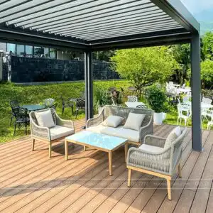 Để sử dụng ở môi trường ngoài trời, tất cả các bộ bàn ghế ngoài trời đều phải được làm từ những chất liệu đặc thù, có thể chống chọi mưa nắng.