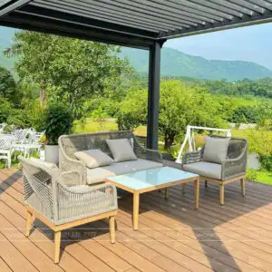 Để đạt được những yêu cầu này, bộ sofe ngoài trời SR-02 đã sử dụng những chất liệu giá trị nhất của ngành nội thất ngoài trời. Đó là khung nhôm sơn tĩnh điện và lưới woven vinyl rope.