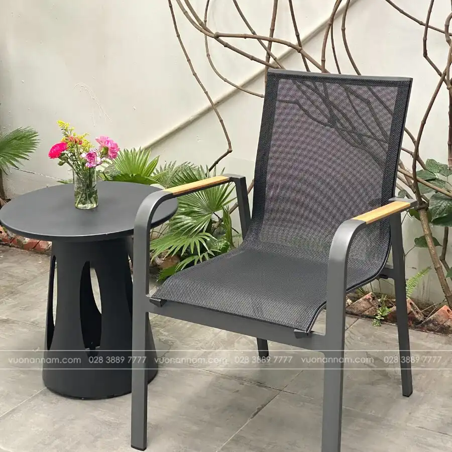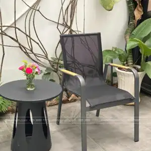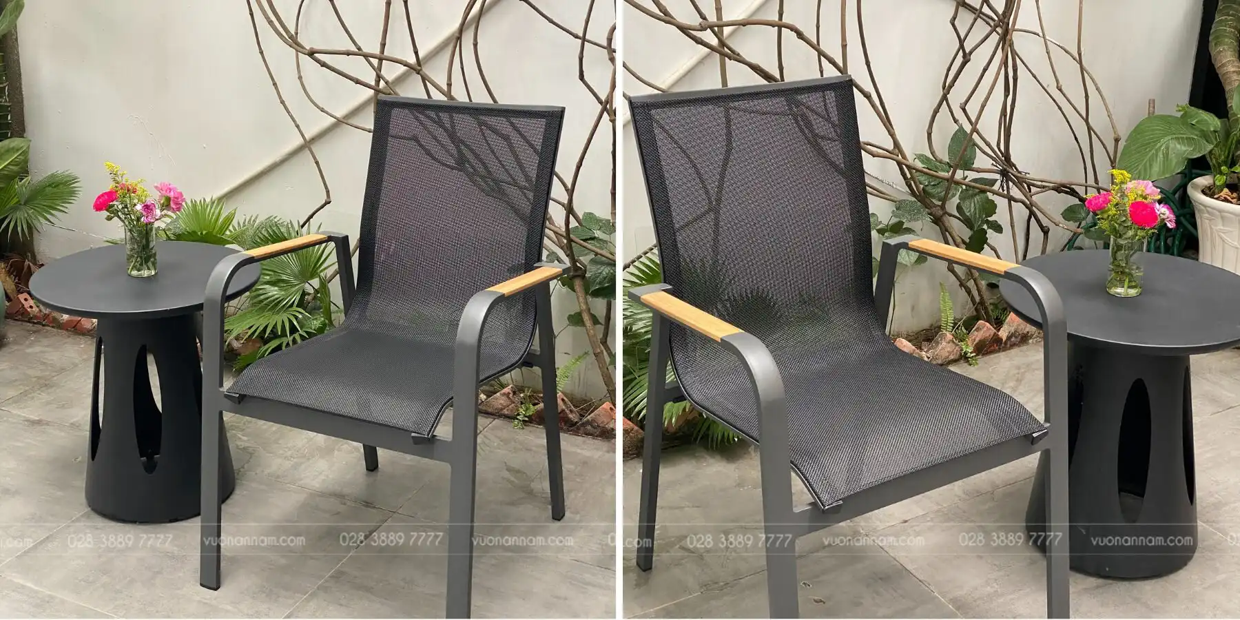 Ghế cafe ngoài trời GTL-01D đã sử dụng chất liệu hợp kim nhôm sơn tĩnh điện làm khung và lưới textilene làm mặt ngồi. Đây là hai vật liệu cao cấp được sử dụng nhiều trong ngành ngoại thất. Khung hợp kim nhôm của ghế GTL-01D là dòng hợp kim cao cấp, có tỉ lệ pha trộn các chất hoàn hảo, không pha trộn các tạp chất rẻ tiền nên có độ bền vượt trội.